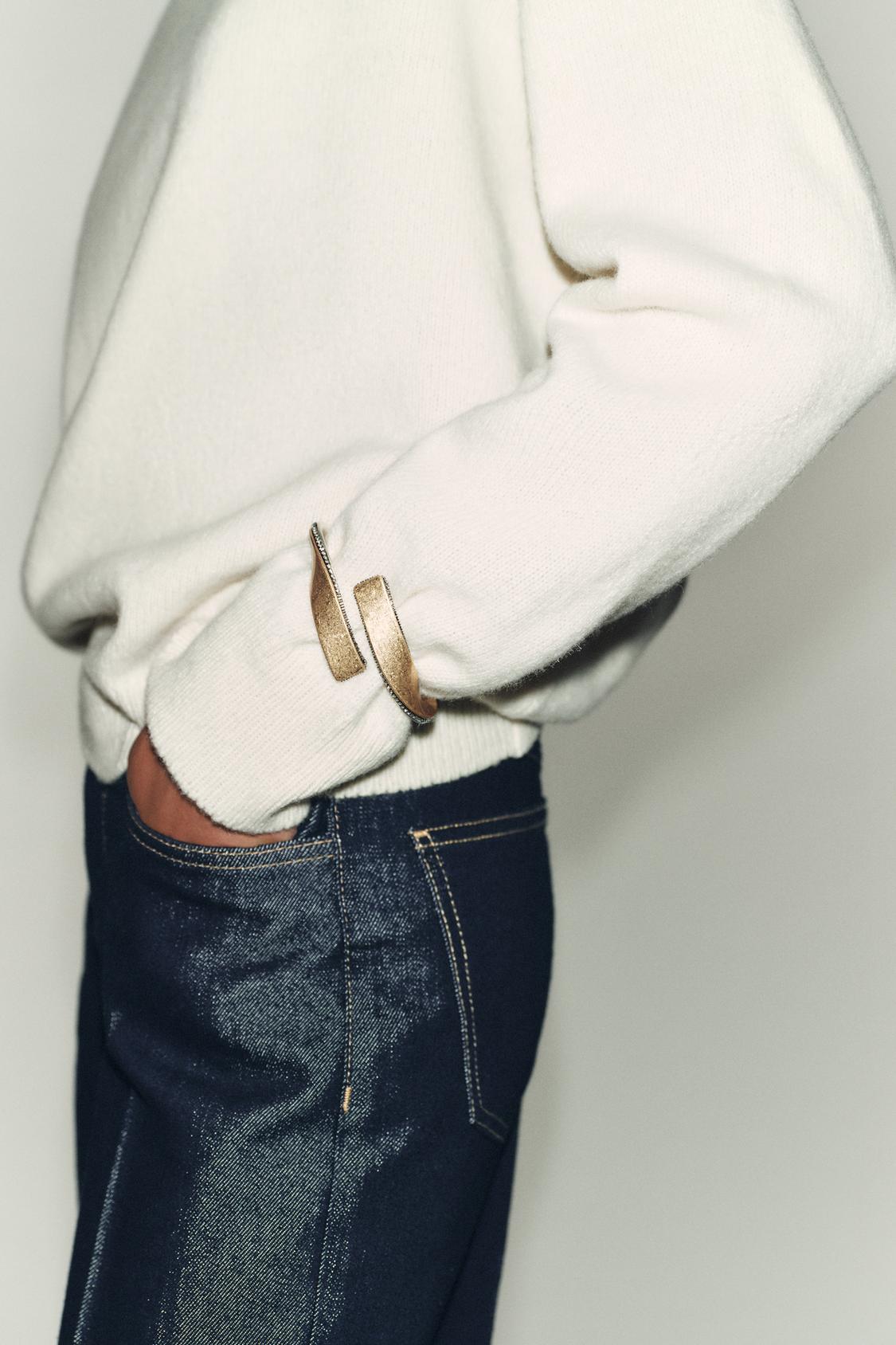 Articulated metal bracelet with contrasting glitter embellishment.