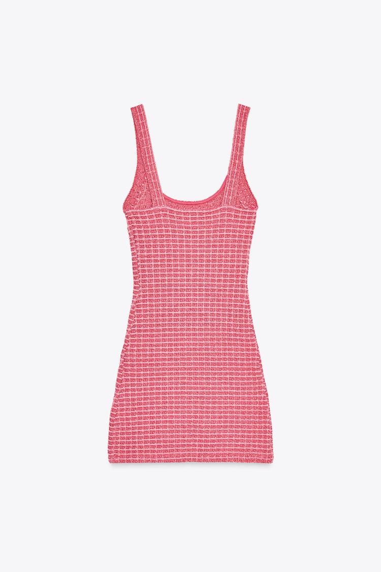 Short dress made in stretch fabric. Round neckline and wide straps. Mock welt pockets with button detail on the front.